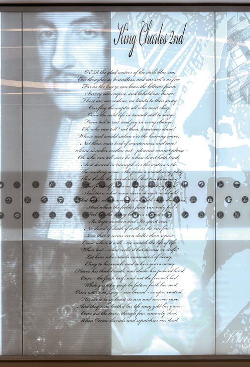 Martin Donlin’s design reflects the history of the area, and includes a variety of former residents in the St James area, including King Charles II and Lord Byron.