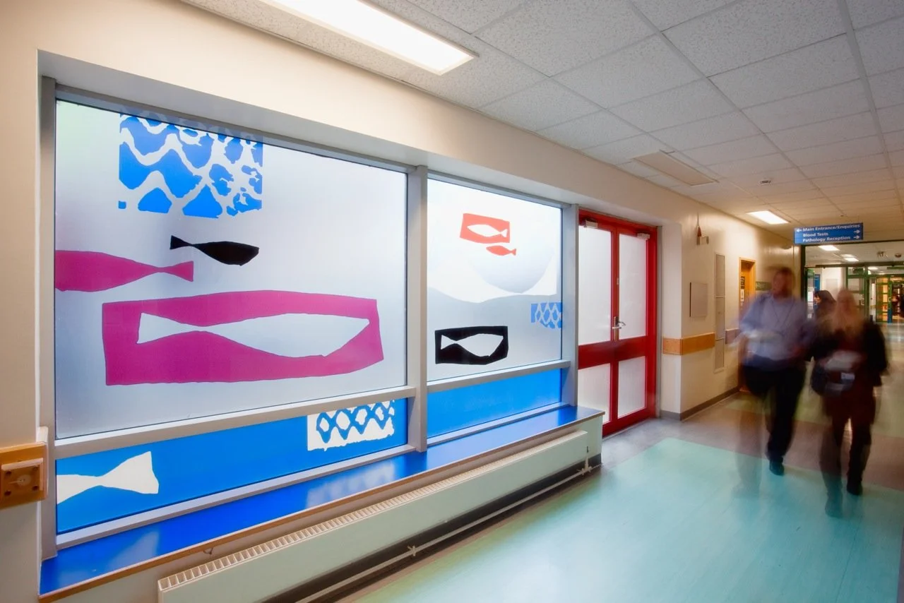 Beyond its aesthetic brilliance and ability to transmit light, glass offers unmatched functional advantages in institutional settings: it is a safety glass, ensuring public security and minimising risk of injury; it is completely cleanable and non-porous, making it an ideal, hygienic choice for spaces where infection control is paramount; and when decorated with ceramic fired enamels, the artwork is permanently fused to the glass, guaranteeing that the vibrant colours and designs will never fade, scratch, or degrade over time.