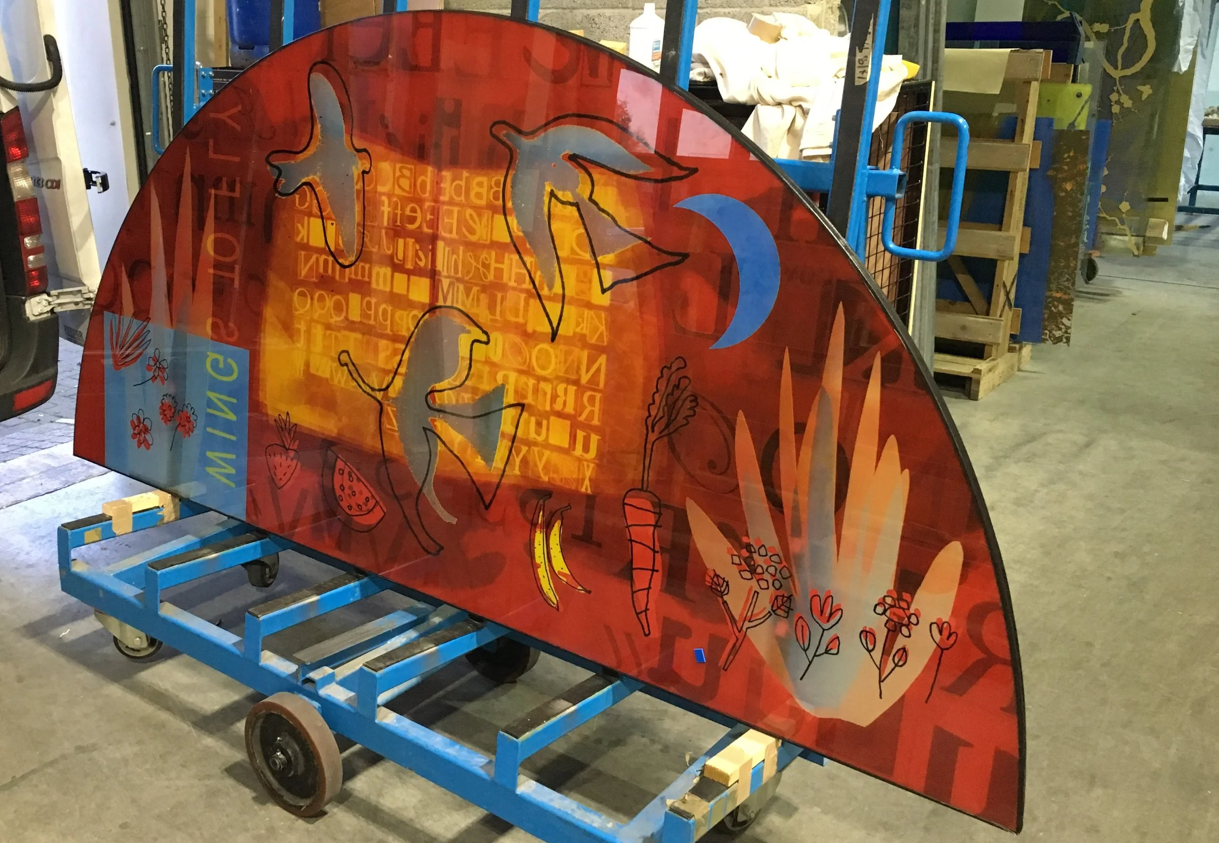 Queen Alexander Hospital. Glass wall art hand painted glass