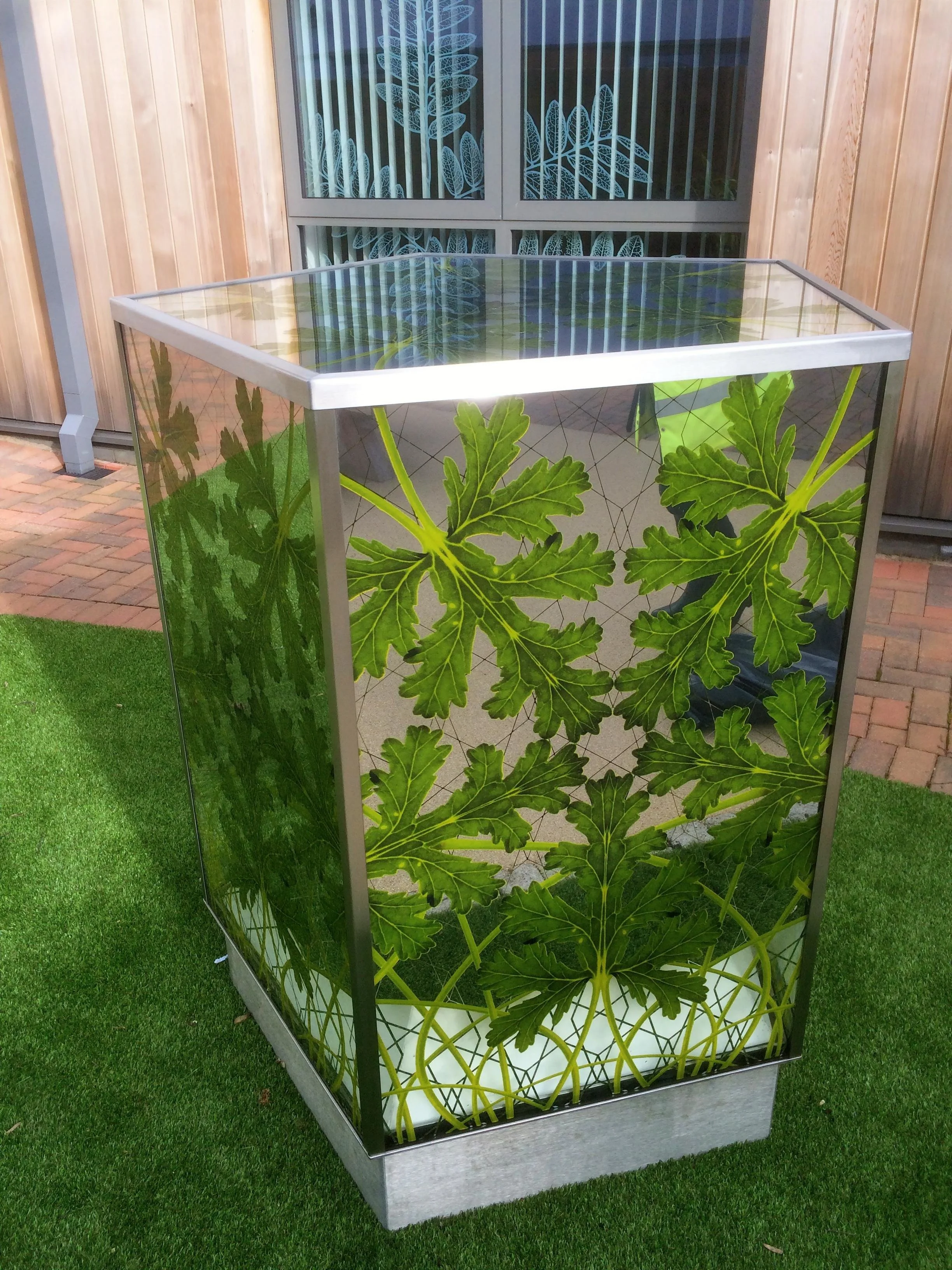 Because these works are displayed in public spaces without barriers, all glass has been toughened and laminated to ensure it will not shatter if damaged.